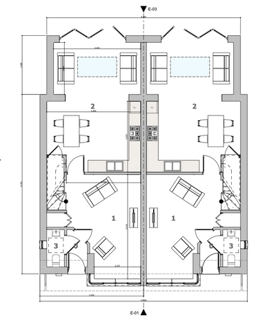 Mae gan bob plot gegin agored gyfoes gydag oergell a rhewgell integredig, peiriant golchi llestri, popty, microdon ac “induction hob”. Mae'r gegin agored gyda ystafell fwyta yn arwain i ardal lolfa arall gyda drysau dwbl (“bifolds”) yn agor allan i'r ardal patio a gardd breifat.